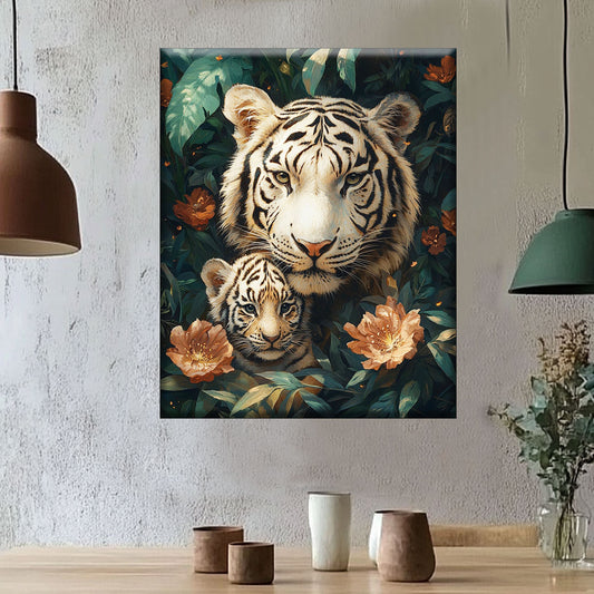 Tigerfamilie im Verborgenen - Malen nach Zahlen